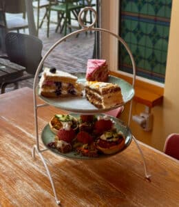 je kunt kiezen uit onze lunchboxen, heerlijke vegan taarten en een high tea-arrangement.